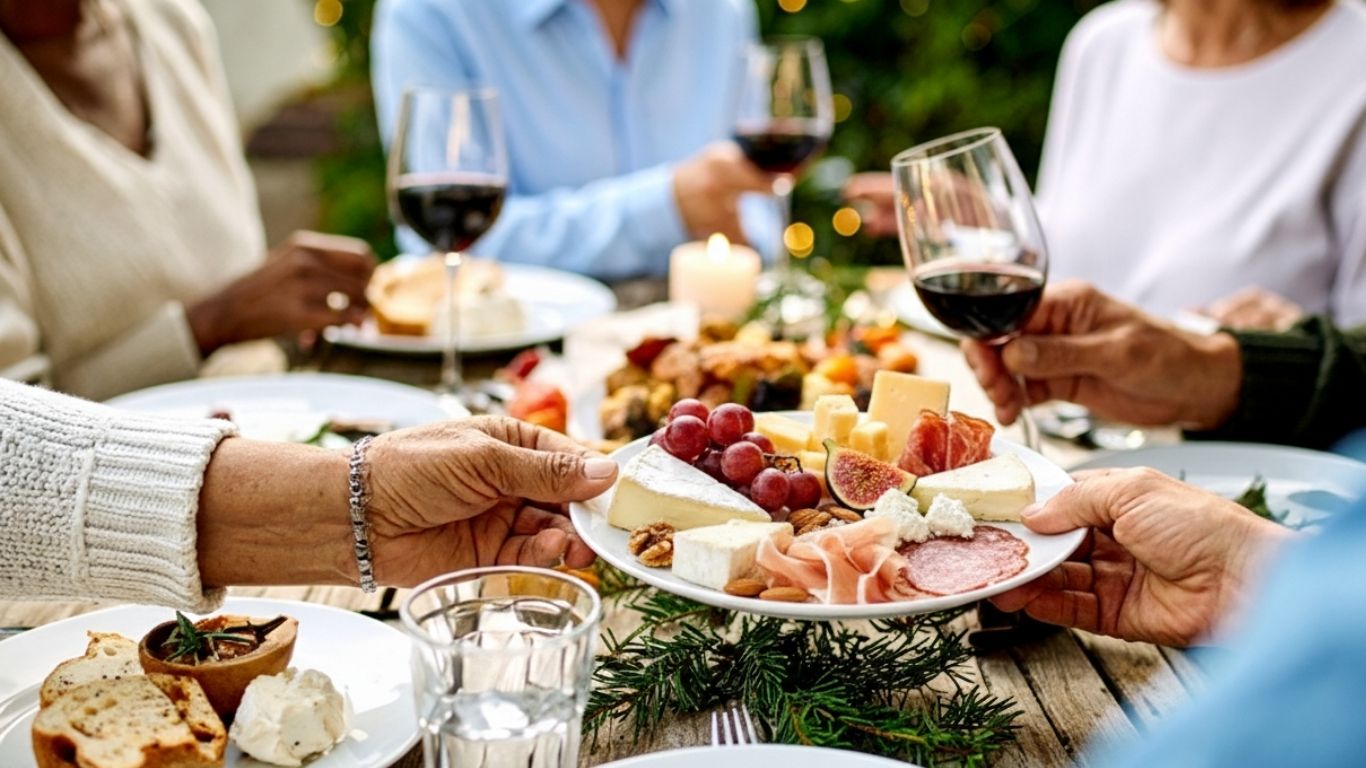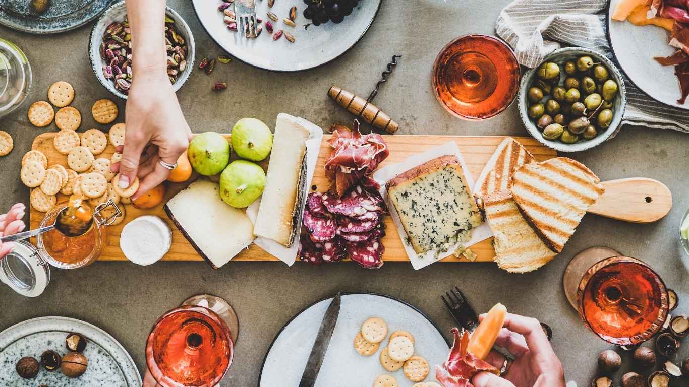 Light charcuterie pairings. Cheese, meats, and fruit